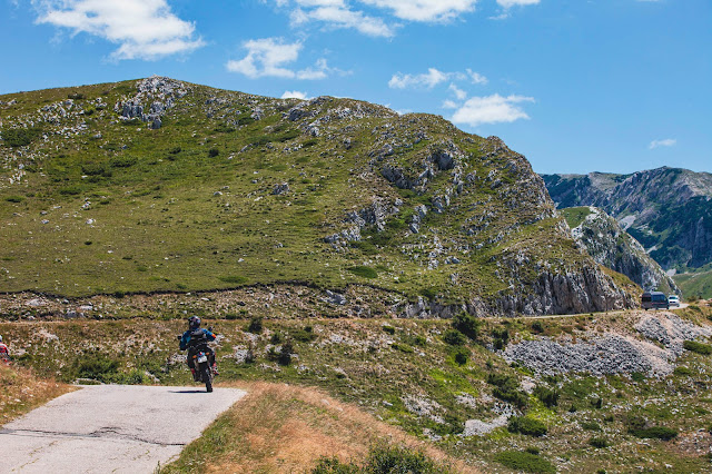 Kawa !! to powinno pomóc na głód. A tak piękne okoliczności przyrody same proszą się o postój, który oczywiście robimy :) Ciastka to wyśmienity obiad na pusty brzuch hahaha. Kawa z ciastkami w takich warunkach coś absolutnie unikatowego. Po tak wykwintnym daniu ruszamy dalej bo czas goni. Górskie drogi wiją się coraz wyżej, aż docieramy do jeziora coś, ala naszego Morskie Oko w Tatrach. Tylko takie bardzie przyjazne turystom wszelakiej maści. Jest tu sporo rozbitych namiotów domków, knajpek…. sztuk jedna 😉 i miłych wesołych ludzi, wymarzone miejsce na biwak lecz nie tym razem trasa jest zaplanowana inaczej, więc musimy niestety jechać dalej.